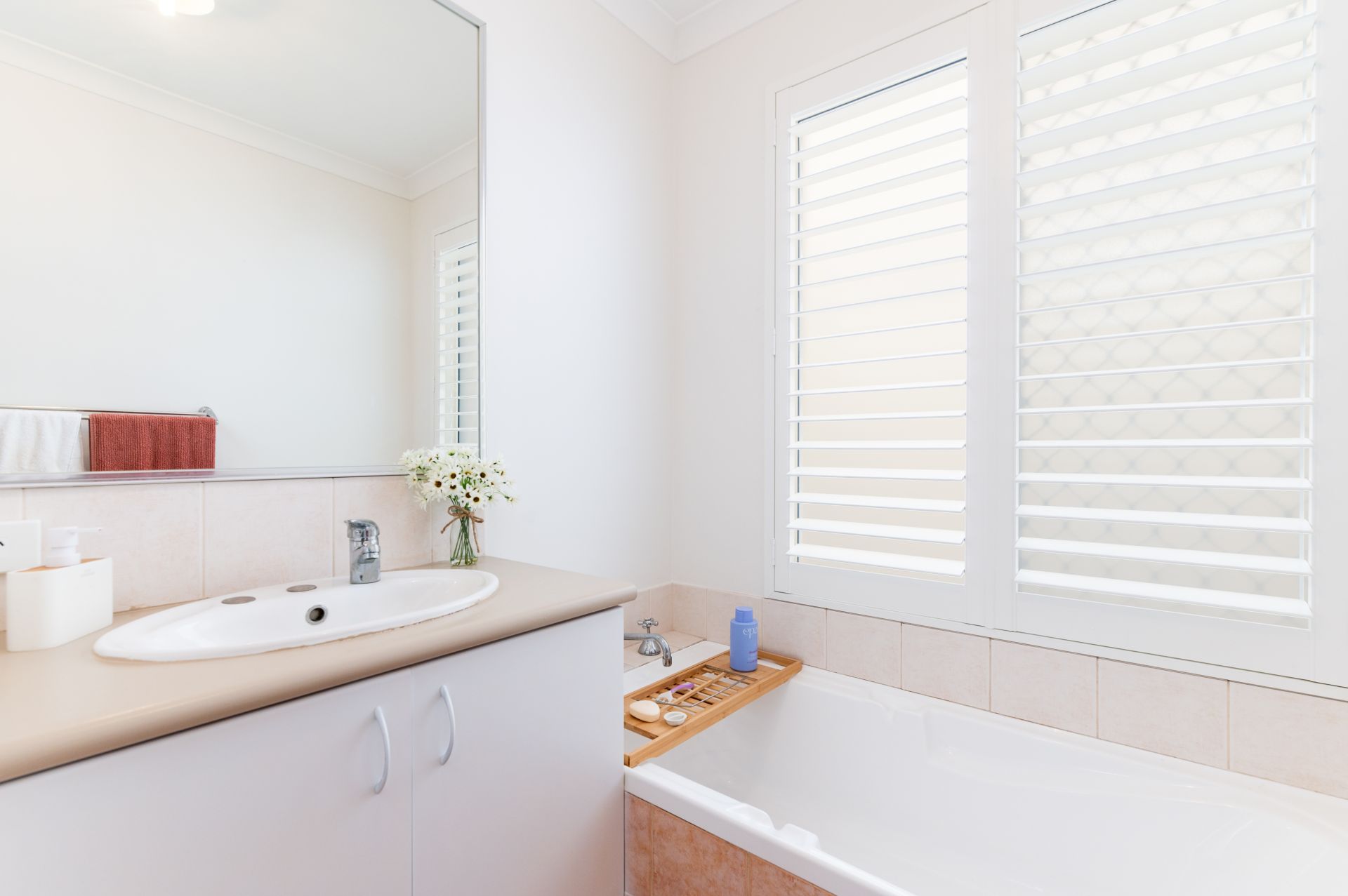 • Main bedroom with ensuite, walk in wardrobe, stunning window treatments and roller shutters for the extra privacy.