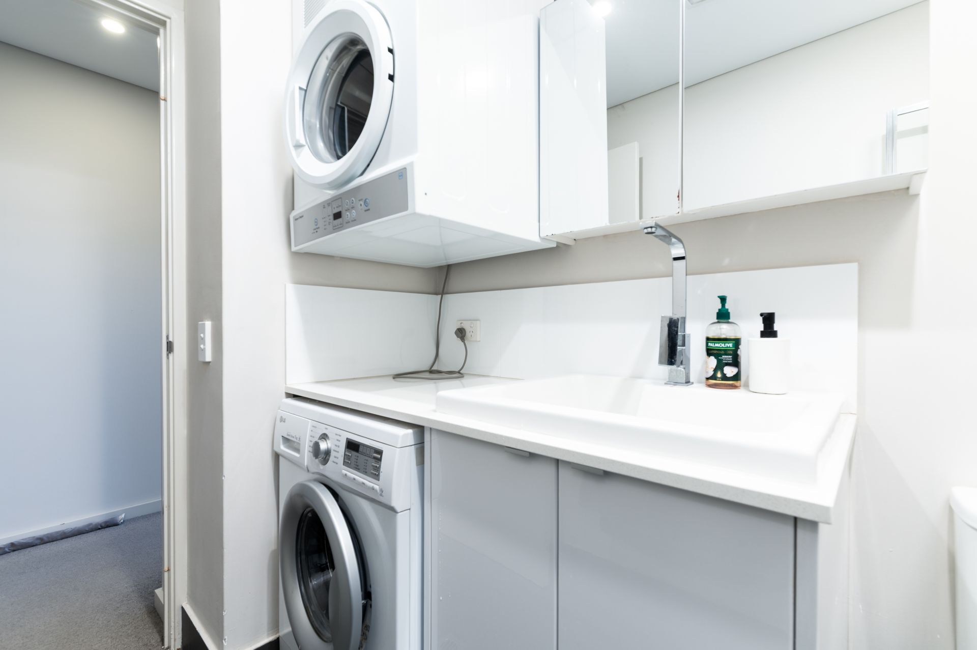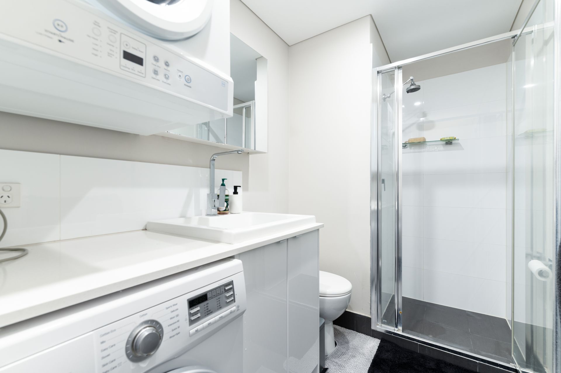 • Contemporary bathroom with laundry