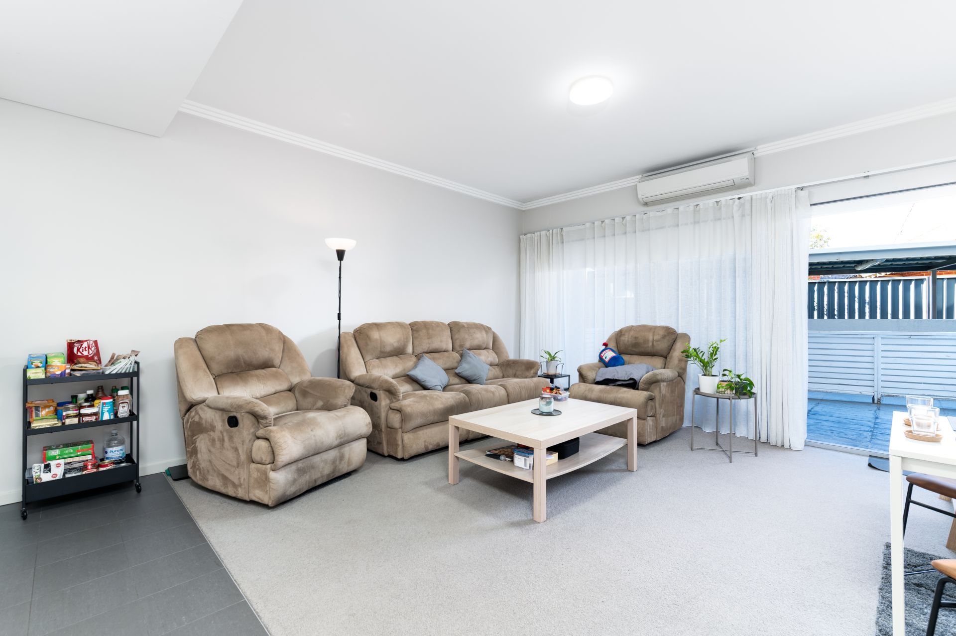 • Spacious open-plan living and dining area with split system air-conditioning